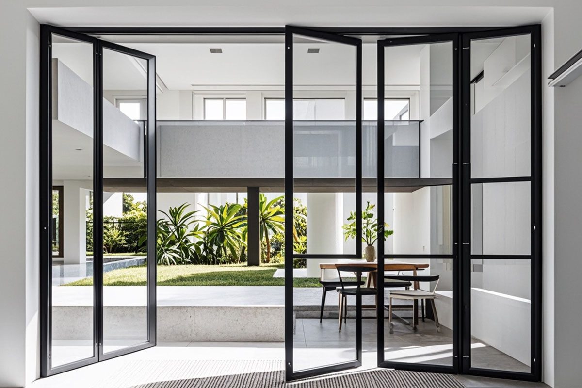 Heritage Windoors’ Invisi Fold aluminium doors offer the ultimate in flexibility and aesthetics. These doors feature individually folding panels that slide and stack neatly to the side, offering a wide, uninterrupted opening. When closed, they provide a sleek glass façade with slim aluminium frames. Ideal for modern homes and commercial spaces, Invisi Fold doors deliver panoramic views, seamless ventilation, and advanced locking for security.